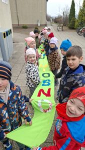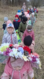 W piątek 20 marca wszystkie dzieci z naszej grupy świętowały nadejście wiosny. Dla każdej Żabki było to bardzo wyczekiwane wydarzenie. Dzień ten rozpoczęliśmy od rozmów o nowej porze roku oraz od wesołych zabaw przy muzyce. Uśmiechnięci wyruszyliśmy na wiosenną paradę w okolicy naszego przedszkola, gdzie pożegnaliśmy zimę okrzykiem „Żegnaj zimo, witaj wiosno”, następnie śpiewaliśmy głośno piosenki o wiośnie oraz graliśmy na dowolnie wybranych instrumentach. I tak kolorowy, wiosenny oraz uśmiechnięty pochód mógł wrócić do przedszkola. Cieszymy się, że w taki sposób mogliśmy w pełni przywitać wiosnę. Mamy nadzieję, że dzięki zaangażowaniu naszych przedszkolaków wiosna zawita do nas na dobre, a wraz z nią ciepłe dni, z których będziemy czerpać radość.