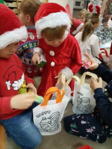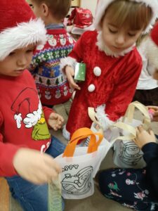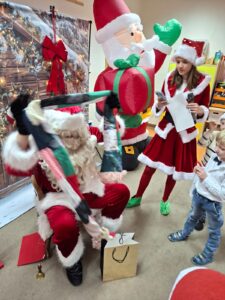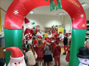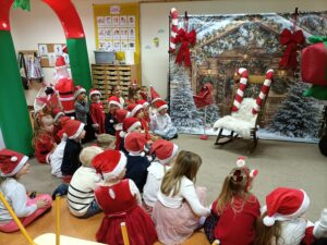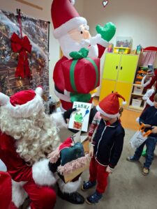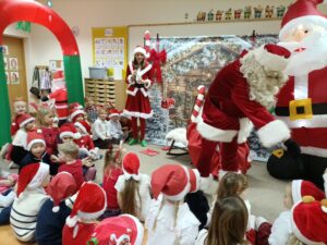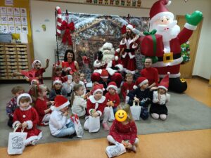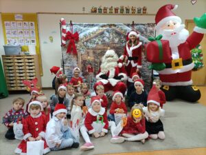 Dzisiaj przed obiadem w naszym przedszkolu odbyło się wyjątkowe wydarzenie – odwiedził nas sam Święty Mikołaj🎅! Dzieci od dawna z niecierpliwością czekały na to spotkanie, a kiedy tylko Mikołaj pojawił się w sali, na twarzach przedszkolaków zagościł ogromny uśmiech. Mikołaj wraz z Panią Mikołajkową 🎅🧑🎄przygotowali dla dzieci mnóstwo atrakcji. Były wesołe zabawy, zadania pełne świątecznej magii, zagadki oraz niespodzianki, które sprawiły przedszkolakom dużo radości.🎁 Każdy miał okazję zatańczyć z Mikołajem, opowiedzieć o swoich marzeniach oraz o tym jak grzeczny był przez cały rok. W ramach podziękowania dzieci zaśpiewały Mikołajowi piękną piosenkę świąteczną, wręczyły przygotowaną laurkę, a także własnoręcznie uszyty szalik🧣, aby już Święty Mikołaj nie marzł na biegunie północnym. Wszystkie przedszkolaki tego dnia zaprezentowały się wspaniale, a Mikołaj nie ukrywał wzruszenia i nagrodził ich gromkimi brawami oraz prezentami. To był niezapomniany dzień, pełen radości, emocji i świątecznego ciepła. Dziękujemy Mikołajowi i jego towarzyszą za odwiedziny i już nie możemy się doczekać kolejnego spotkania!