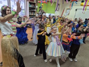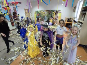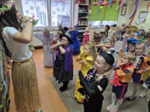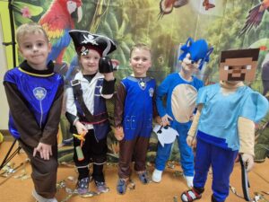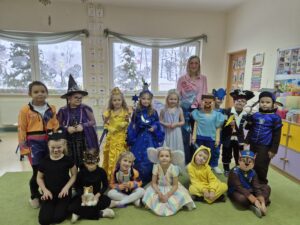 W minionym tygodniu w naszej grupie Sówek odbył się wyjątkowy Bal Karnawałowy. Tego dnia dzieci zaprezentowały wspaniałe, pomysłowe stroje – pojawiły się księżniczki,  superbohaterowie, zwierzątka oraz wiele innych bajkowych postaci. Nie zabrakło tańców przy ulubionych piosenkach, zabaw ruchowych oraz konkursów, które wywołały mnóstwo śmiechu i pozytywnych emocji. Wspólna zabawa sprzyjała integracji i pozwoliła wszystkim poczuć prawdziwie karnawałową atmosferę.
