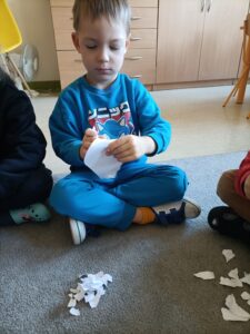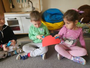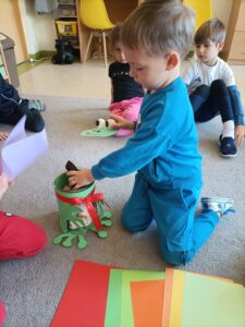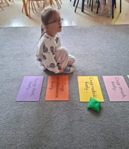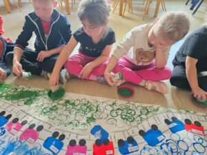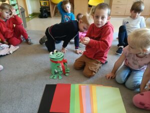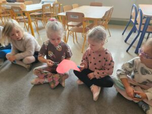 W grupie „Żabek” przez cały tydzień przeprowadziłyśmy szereg działań wspomagających rozwój dzieci, wspierających kompetencje społeczne, takie jak wrażliwość na zachowania innych, umiejętność określania zachowań życzliwych i nieżyczliwych, pomagając dzieciom reagować adekwatnie w trudnych sytuacjach i budować życzliwy, wspierający klimat w grupie. Przyjrzeliśmy się temu, jak łatwo możemy kogoś skrzywdzić, ale też jak możemy dbać o innych oraz naprawiać krzywdę, którą im robimy.