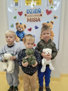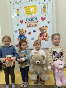 25 listopada swoje 艣wi臋to obchodzi najlepszy przyjaciel maluch贸w i najmilsza przytulanka przy zasypianiu – Pluszowy Mi艣. Tego dnia dzieci z grupy Kotk贸w przysz艂y do przedszkola ze swoim ulubionym puchatym przyjacielem, aby razem z nim 艣wi臋towa膰. By艂y wi臋c piosenki, puzzle, konkursy oraz bajka zwi膮zana z bohaterem tego dnia. Przedszkolaki wykona艂y r贸wnie偶 prac臋 plastyczn膮 z misiem w roli g艂贸wnej. To by艂 wyj膮tkowy dzie艅.