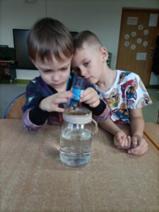 W roku szkolnym 2025/2026 dzieci z grupy „Żabek” znalazły się w bardzo wąskim gronie jedynych 600 wybranych grup przedszkolach z całej Polski . Dzięki czemu mogły wziąć udział w projekcie edukacyjnym „ Mali Wielcy Odkrywcy” skierowanym do dzieci w wieku 5-6 lat. Program ten powstał z myślą o promowaniu edukacji poprzez zachęcanie przedszkolaków do samodzielnego przeprowadzania doświadczeń i odkrywania świata.