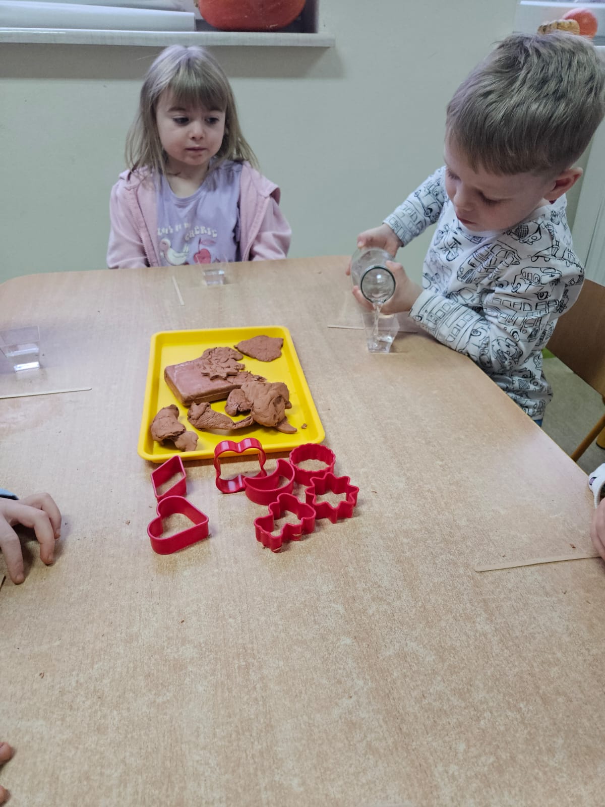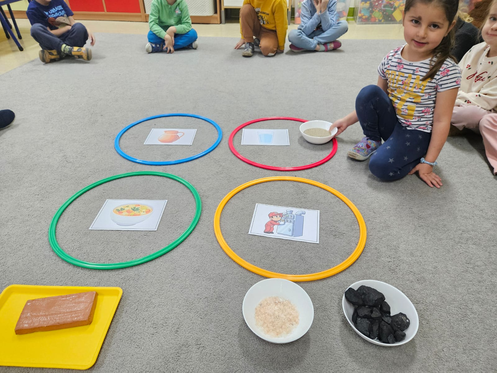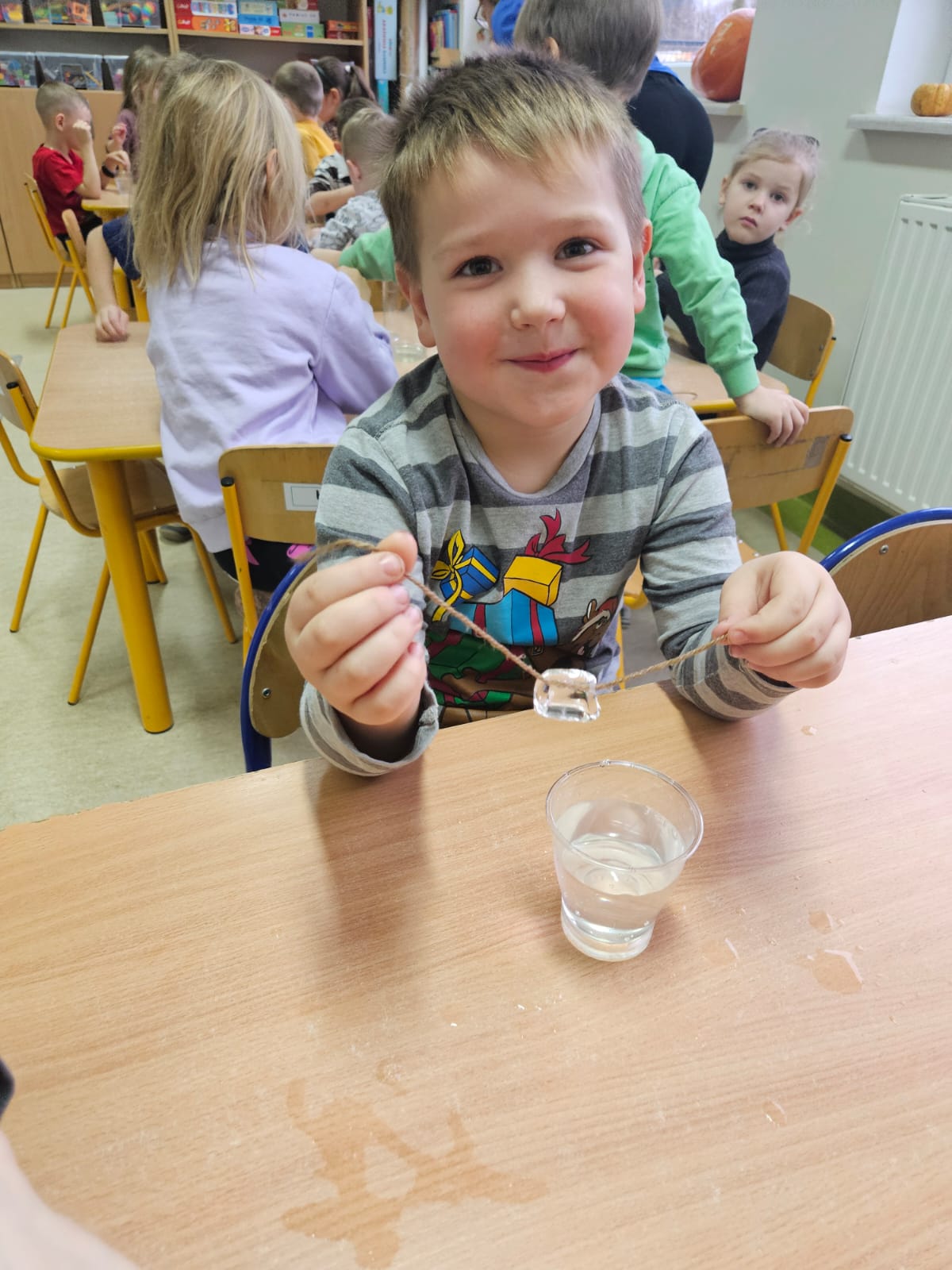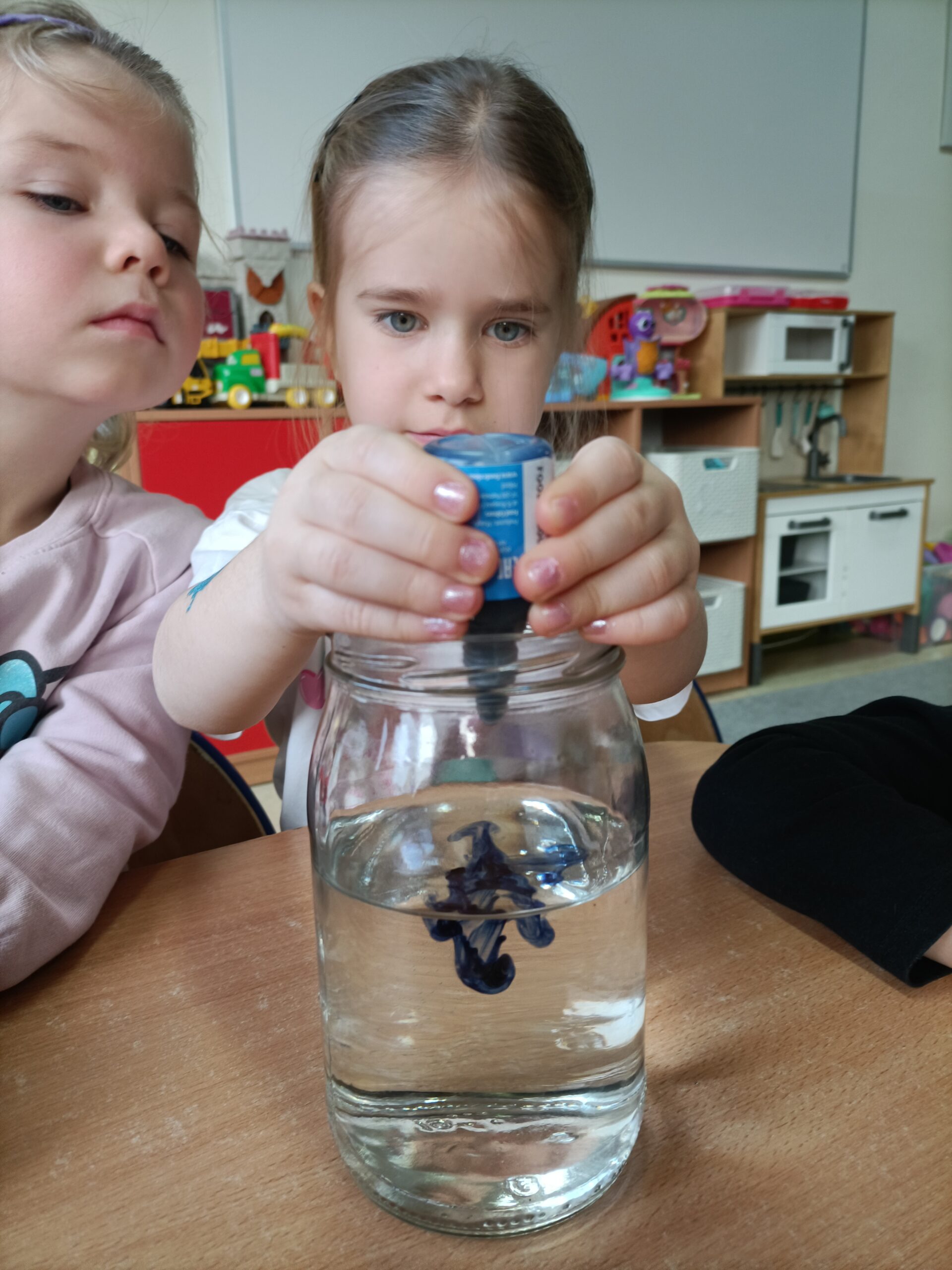 Podczas I etapu projektu nasze Żabki badały różnorodne materiały i poszukiwały odpowiedzi na pytanie: skąd się bierze ropa naftowa? Dzieci zdobywały wiedzę na temat surowców mineralnych w Polsce, dowiadywały się, co jest z czego zrobione, a także poznawały materiały za pomocą wielu zmysłów. Szczególnym zainteresowaniem cieszyło się odkrywanie magii tkanin – ich faktur, właściwości i zastosowań. Podczas zajęć przeprowadzono wiele ciekawych eksperymentów z wodą, olejem, kolorami oraz różnymi materiałami, które rozwijały dziecięcą ciekawość, kreatywność i umiejętność obserwacji.