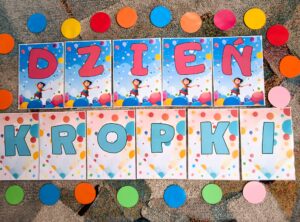 Z okazji DNIA KROPKI najmłodsze przedszkolaki z dużym zainteresowaniem wysłuchały bajki pt. „Wielki wyścig małej kropki”, która nauczyła nas ,