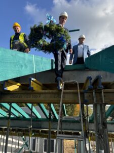🎉 Symboliczny moment w Koleczkowie! Na budowie nowego Zespołu Szkolno-Przedszkolnego w Koleczkowie zawieszono tradycyjny wieniec wieńczący konstrukcję dachu. Dziękujemy KGW