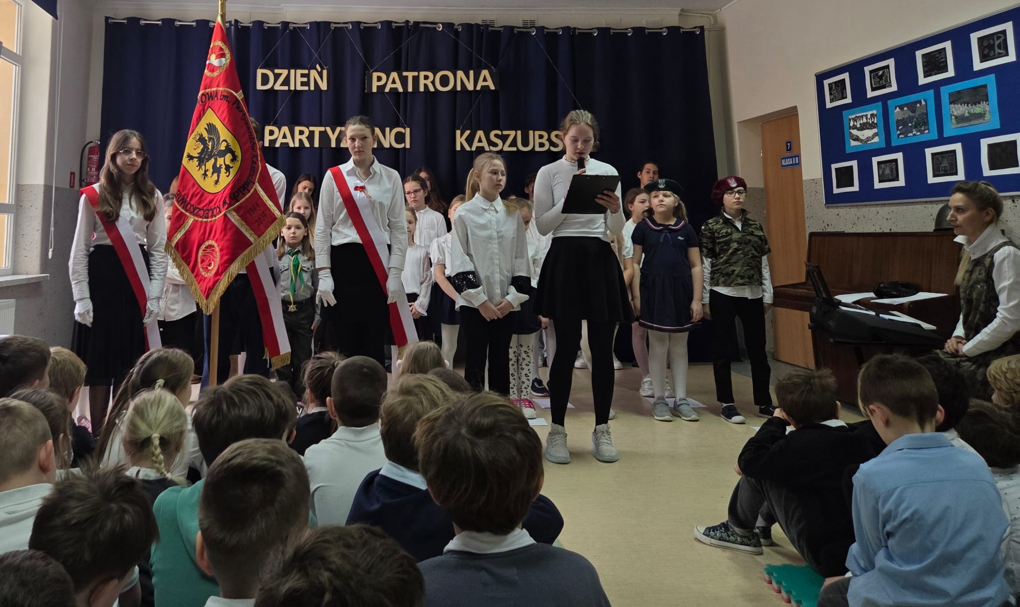25 lutego 2026 r. spotkaliśmy się w murach naszej szkoły na uroczystym apelu, aby uczcić pamięć naszych patronów – Partyzantów Kaszubskich. Był to moment pełen powagi, w którym cała społeczność szkolna oddała hołd bohaterom walczącym o wolność naszej Ojczyzny oraz o prawo do zachowania regionalnej tożsamości.