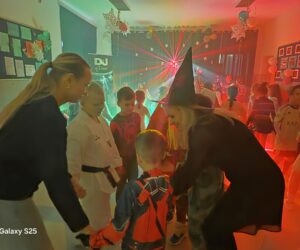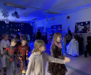 Hol wypełnił się bajkowymi postaciami, superbohaterami, piłkarzami i zwierzątkami, a wesoła muzyka szybko porwała wszystkich do tańca. Były wspólne zabawy, konkursy i dużo śmiechu – nikt się nie nudził!