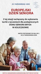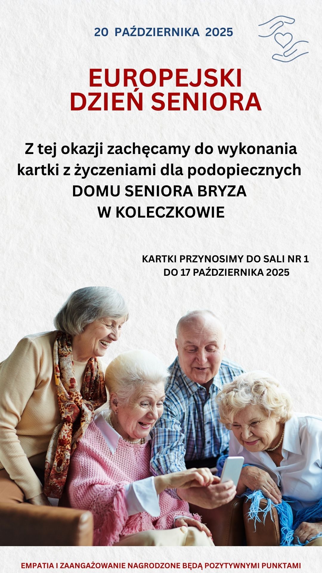 Zachęcamy do wykonania kartek z życzeniami z okazji Europejskiego Dnia Seniora. Kartki zostaną przekazane podopiecznym Domu Seniora Bryza w Koleczkowie.