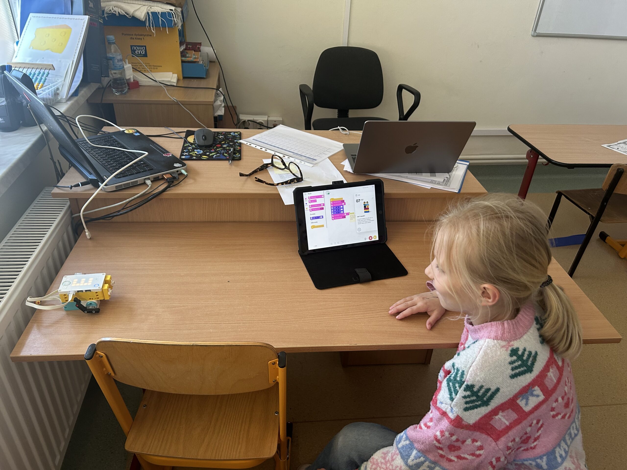 Pomoce dydaktyczne, sprzęt IT oraz meble przy pomocy których realizowane są zajęcia w ramach projektu „Rozwój kompetencji kluczowych uczniów szkół podstawowych w Gminie Szemud”.