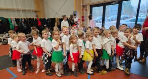 Po części oficjalnej dzieci z grupy Żabek🐸🐸🐸 i Jeżyków🦔🦔🦔 miały również możliwość zaprezentowania wspólnie przygotowanej, specjalnie na tę uroczystość piosenki pt. „Młynek”. Przedszkolacy zostali nagrodzeni gromkimi brawami.